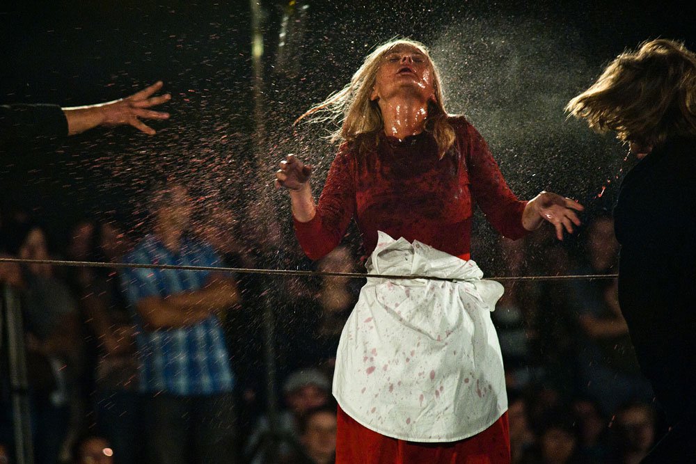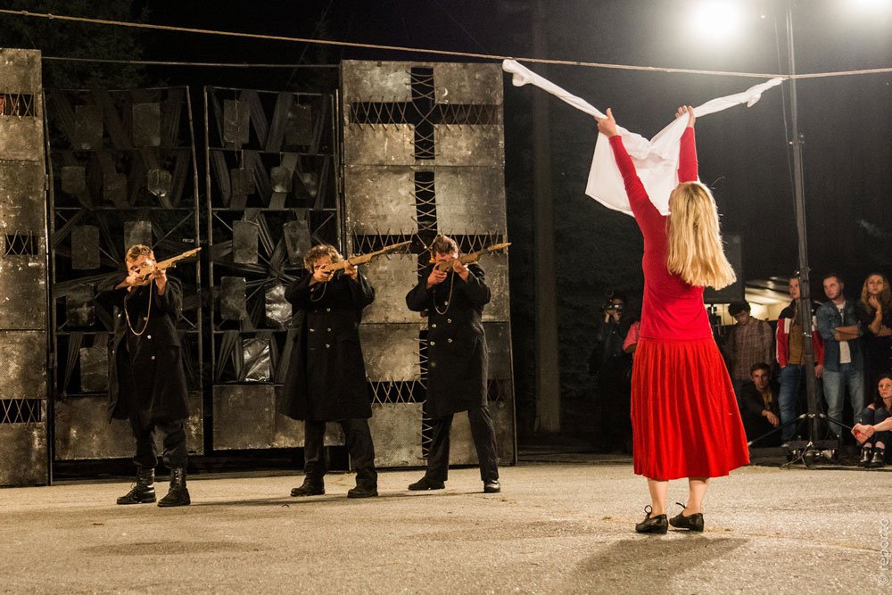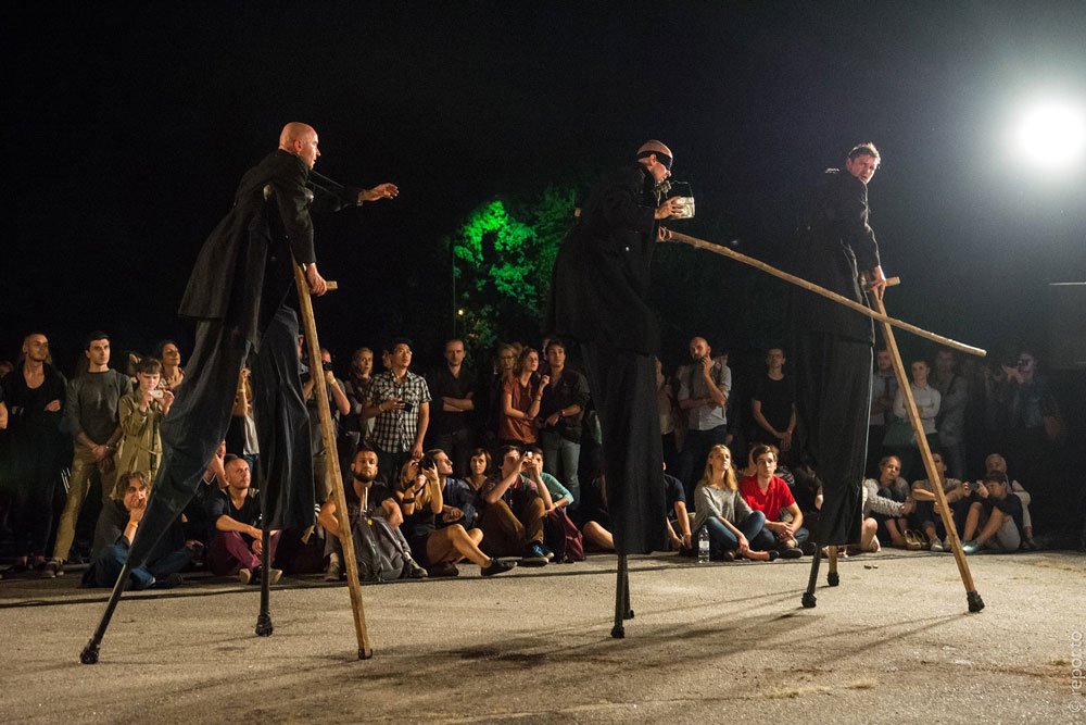 In the performance, the non-linear story takes place both in a realistic and metaphysical plan. The Biuro Podróży Theatre uses spectacular means to attract the attention of both an experienced viewer and a random passer-by. Rats, fire, light effects, poignant music evoke fear and compassion among the audience. In the performance, few words are used, but the sequence of evocative images moves the emotions of the viewers.